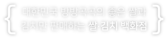 모두함께 조합이 운영하는 쌀.김치 백화점의 특징 - 판매자 직배송으로 유통 거품을 없애고 믿을 수 있는 먹거리를 제공합니다.- 이용자가 구매 제품의 리셀러가 되는 마이샵 정책과 수익분산배분 시스템을 적용하여 첫째, 아는 사람이 추천하는 믿을 수 있는 먹거리를 구입할 수 있으며 둘째, 유통 수익의 공정한 분배가 이루어집니다. |